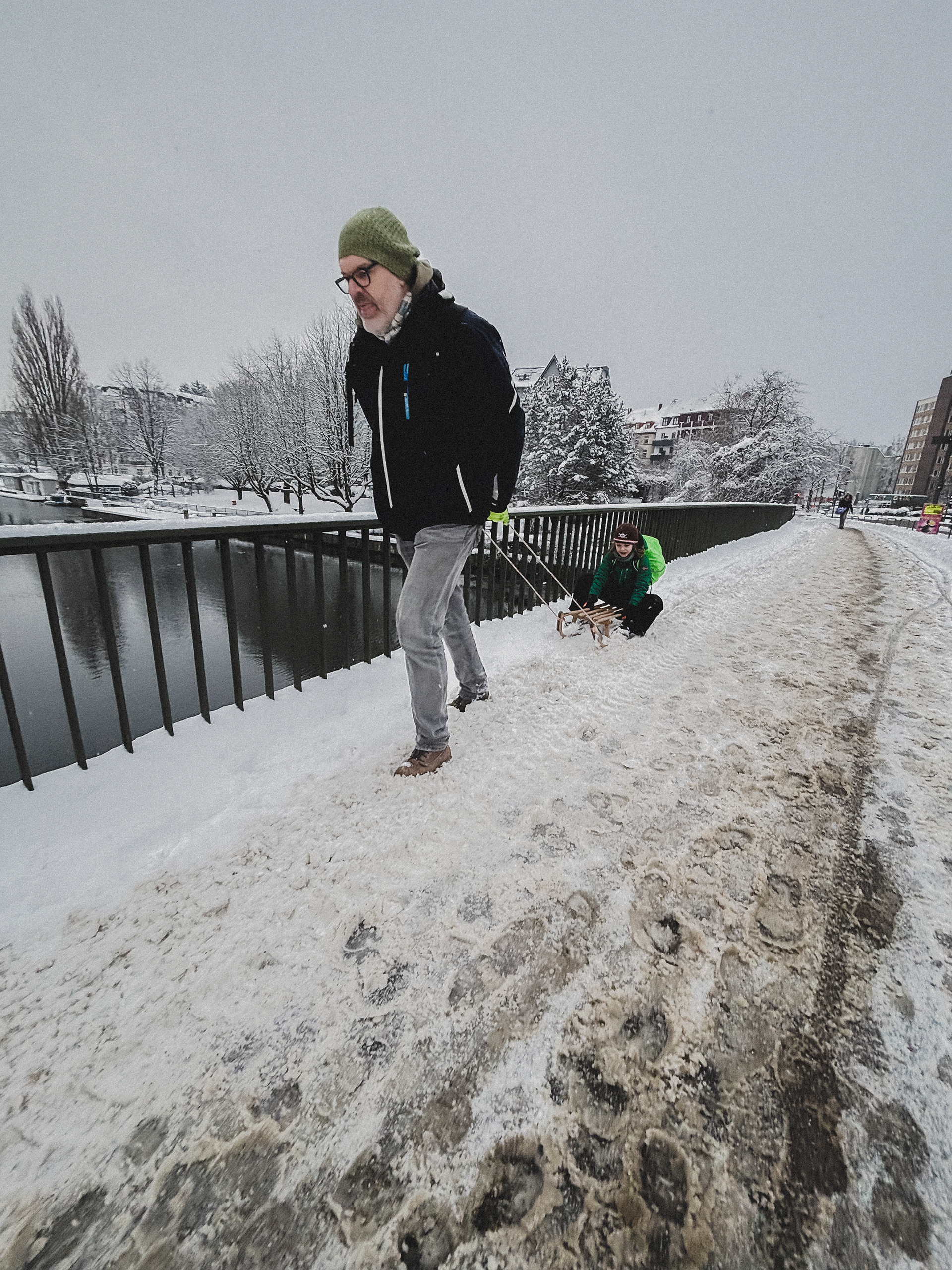 Snowy walk in Hamburg